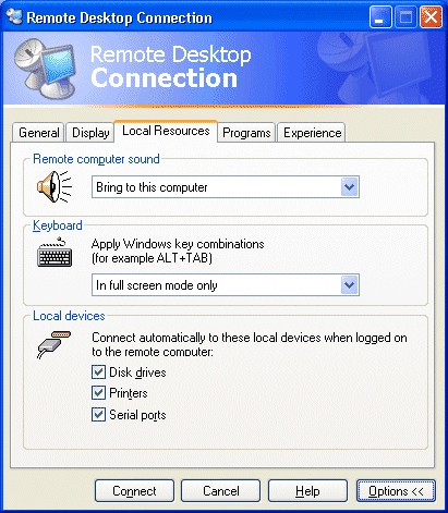 and Serial Ports check boxes automatically reroute these ports from the remote