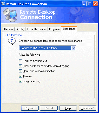 setting on the Experience tab, Bitmap Caching, allows a Remote Desktop session